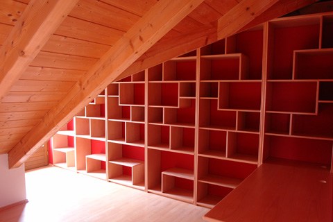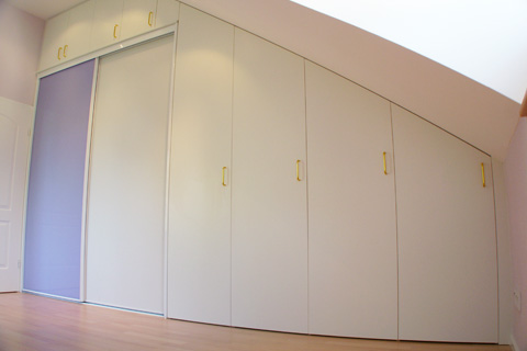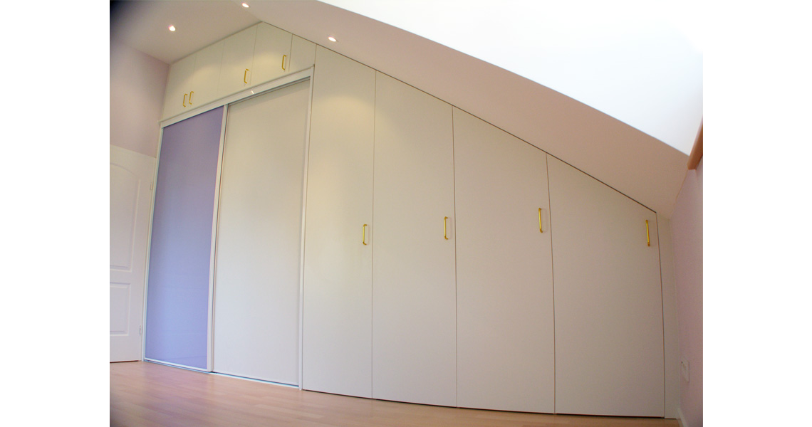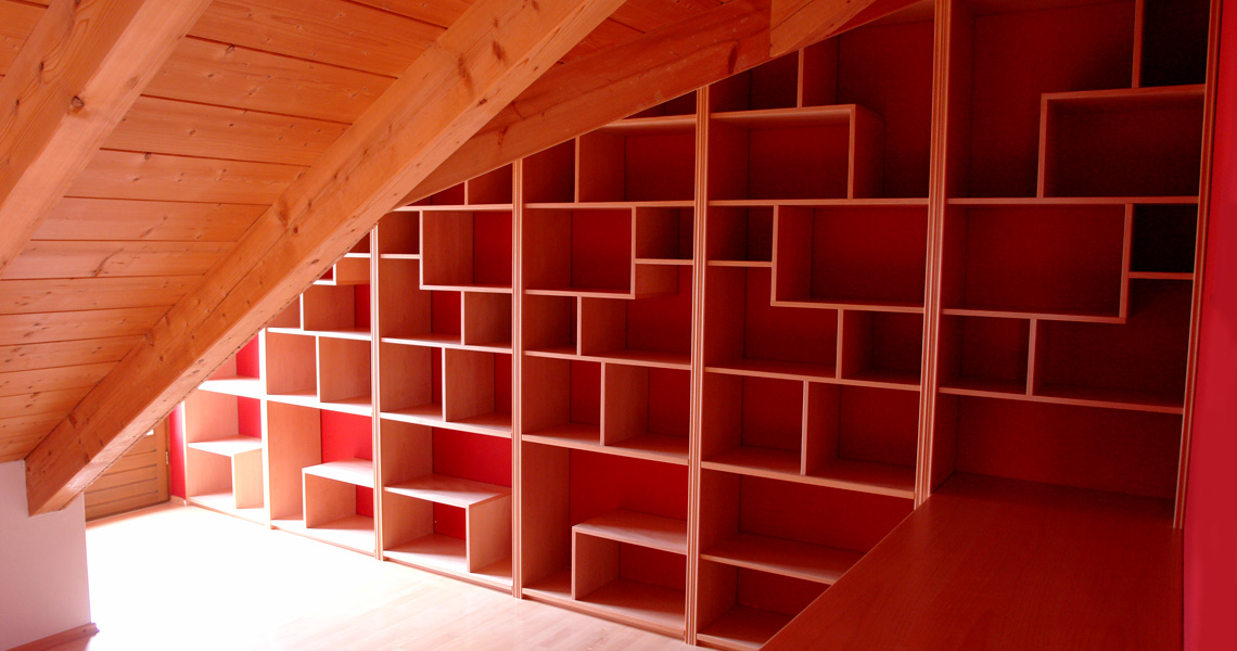 Diese extravagante Schranklösung im Dachgeschoss ist nicht nur optisch sehr ansprechend, sondern bietet auch jede Menge Platz.